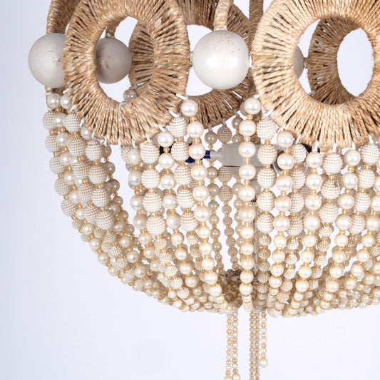 Pearl Beaded Chandelier – 3 Light Coastal Rope & Metal Ceiling Light (24")