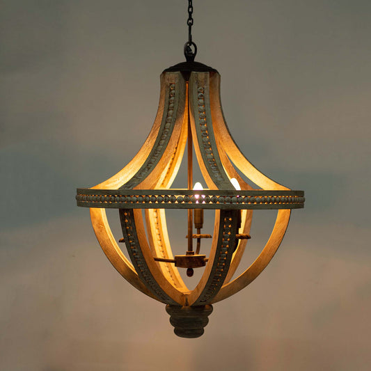 Venice Wooden Beads Chandelier – 3 Light Natural Wood & Antique Bronze Farmhouse Ceiling Light (27")