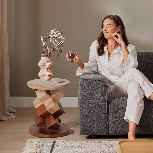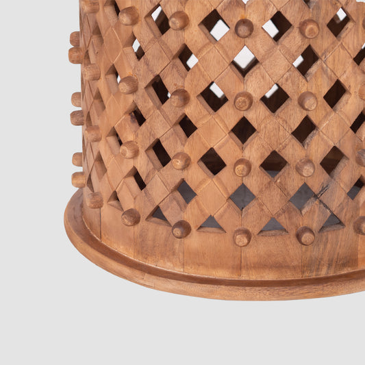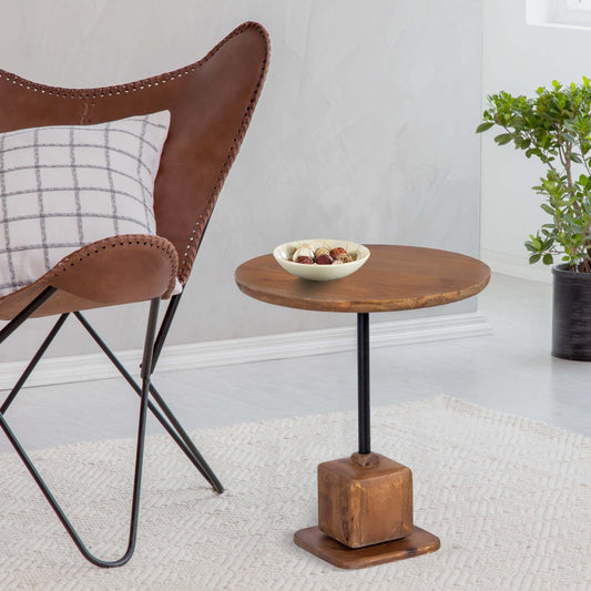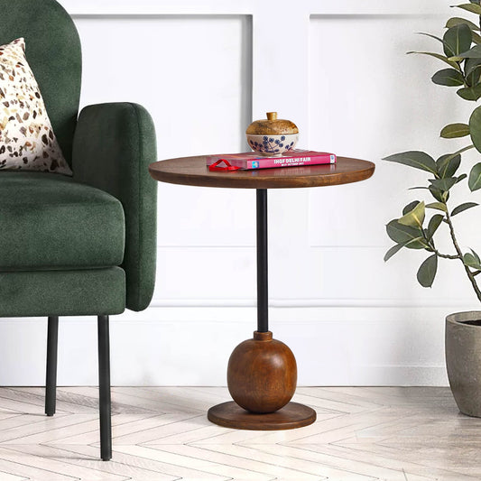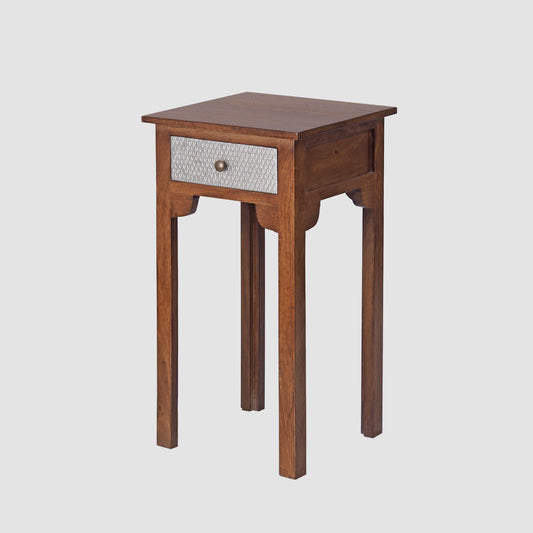 Handcrafted Wooden Bedside Table with Metal Drawer