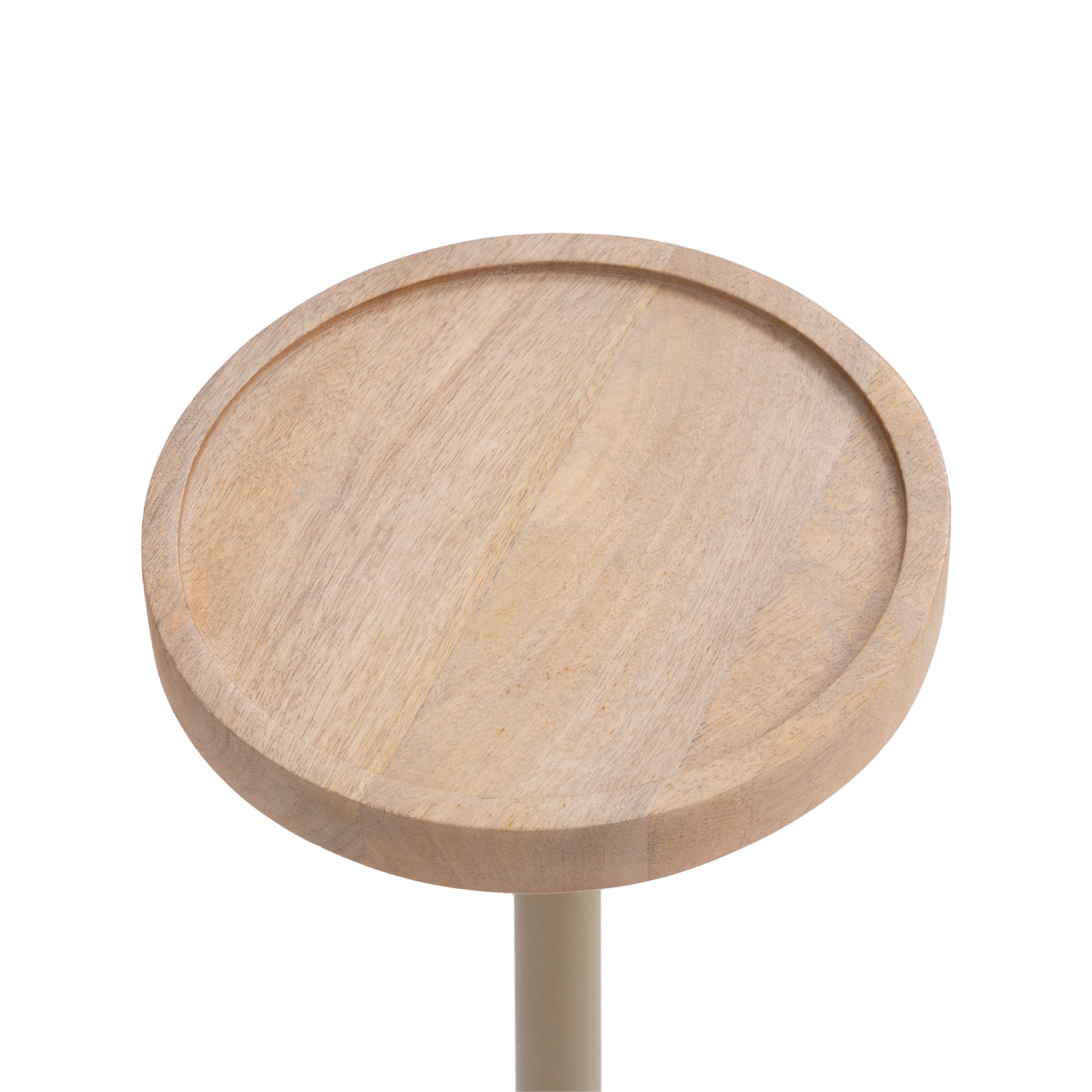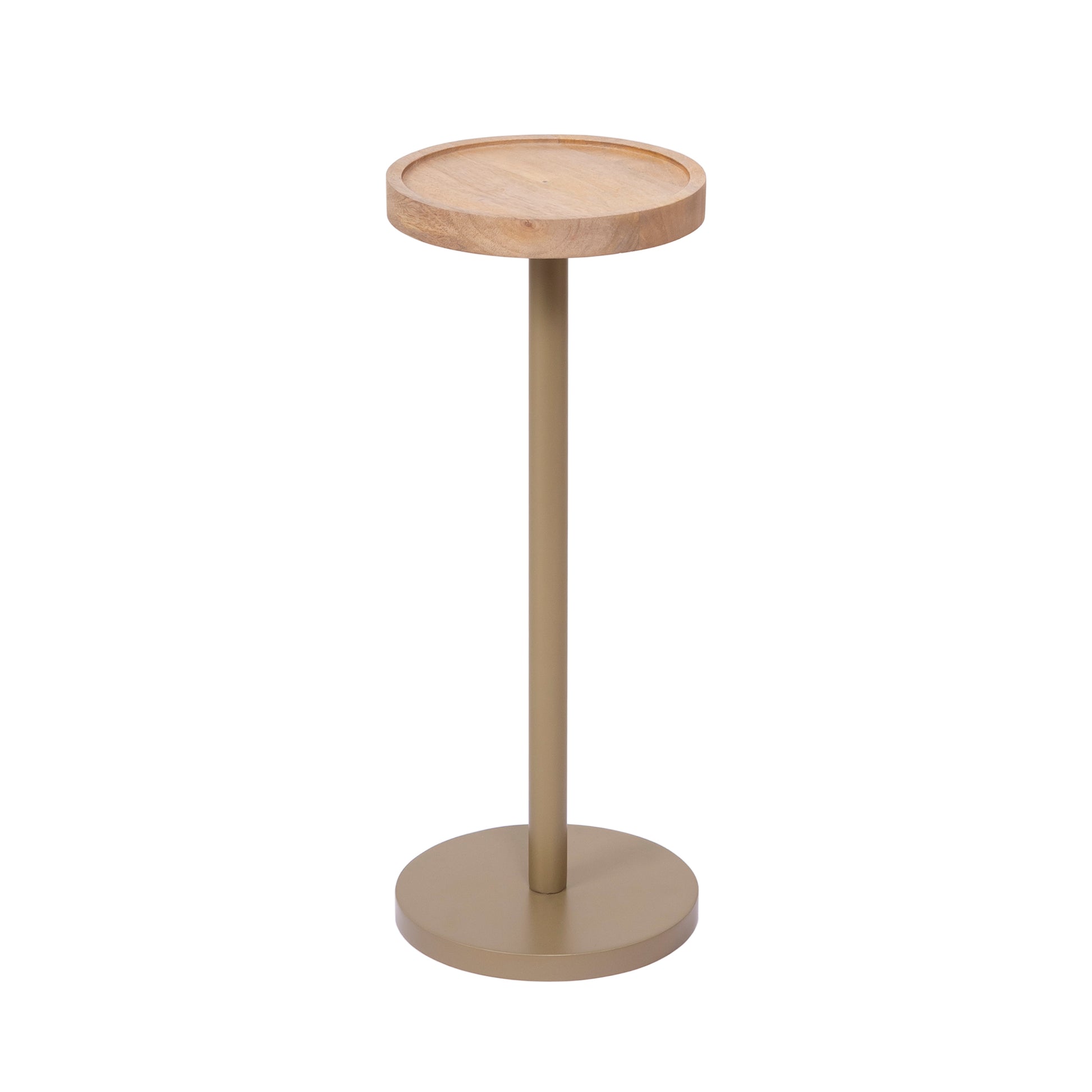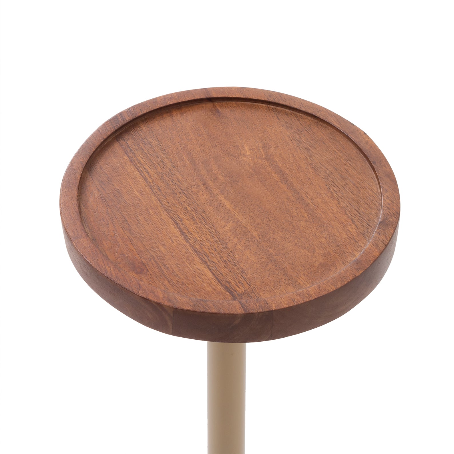 📐Product DimensionsTop Diameter: 8 Inch (20cm.)Height: 20 Inch (50cm.)🎨 FinishTop Finish: Dark Honey, NaturalLeg Finish: Brass Powder CoatingMaterialTop: Solid Mango WoodBase / Legs: MetalAdd a touch of elegance and functionality to your living space with this modern minimalist side table, designed to perfectly complement contemporary interiors. Its compact size makes it ideal for placement beside a sofa, armchair, or bed, offering both style and convenience.The table features a dark honey–finished top that brings warmth and richness to the design, beautifully contrasted by brass powder-coated metal legs for a premium, luxurious look. Crafted with durability in mind, this side table blends modern aesthetics with everyday practicality.Perfect for holding coffee mugs, wine glasses, or décor accents, this piece effortlessly enhances living rooms, bedrooms, apartments, and studio spaces.🏡 Ideal ForLiving room side tableSofa side tableBedside tableAccent table for modern interiorsMinimalist & Scandinavian décor